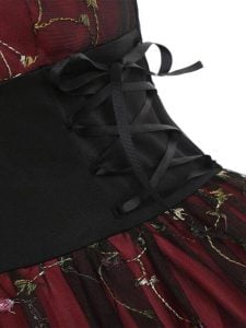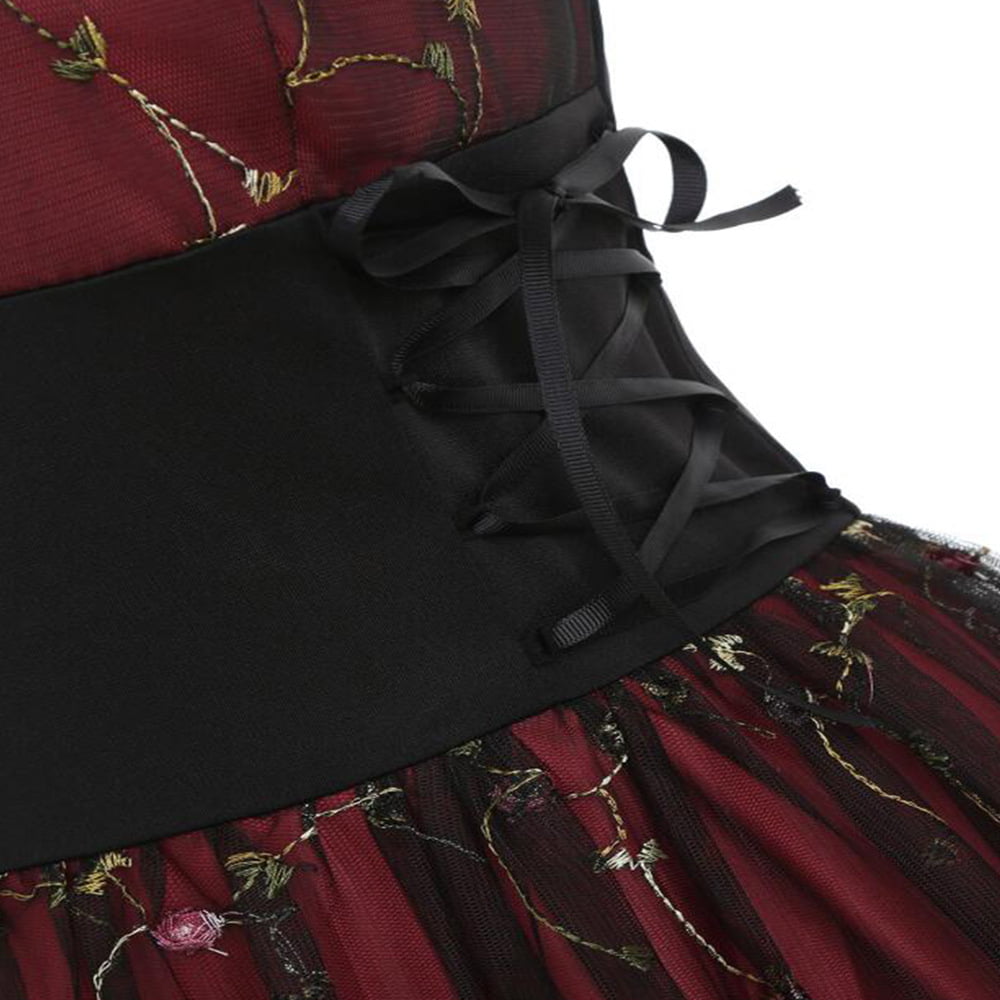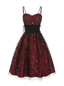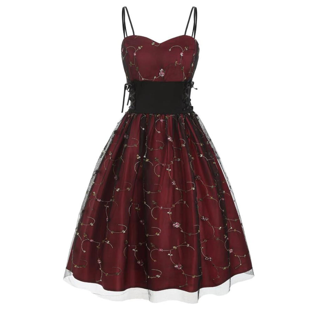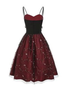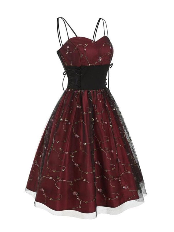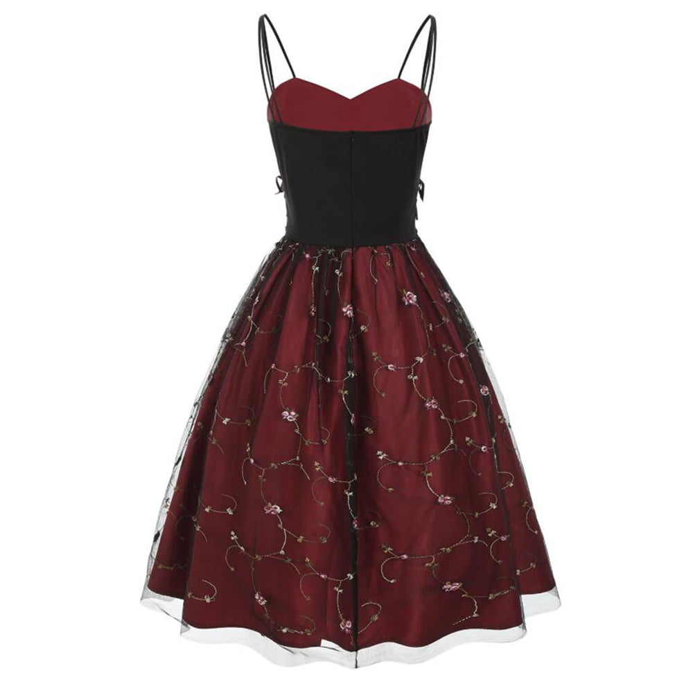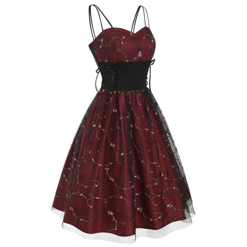 Spaghetti Strap Dresses for Party Floral Embroidery Swing Dresses