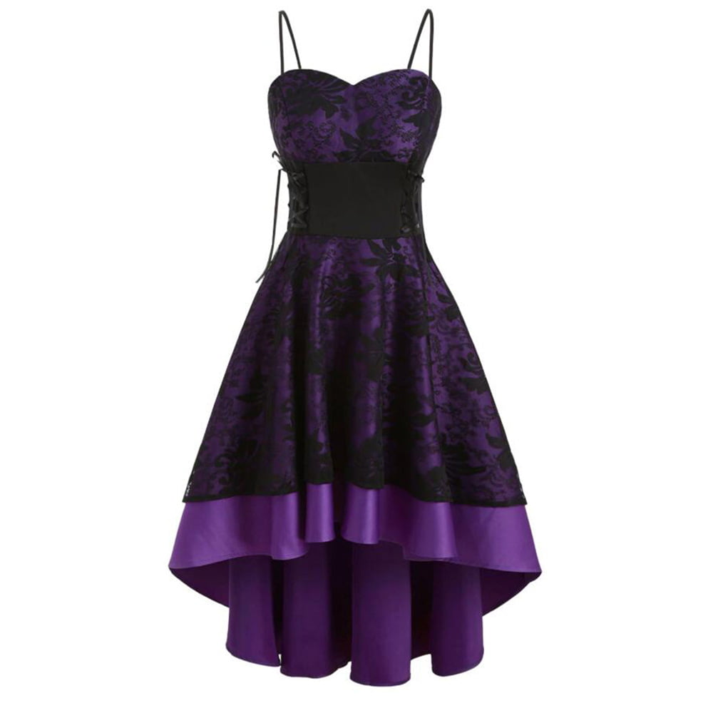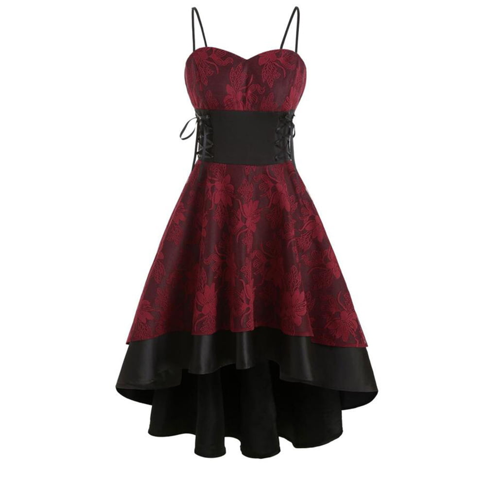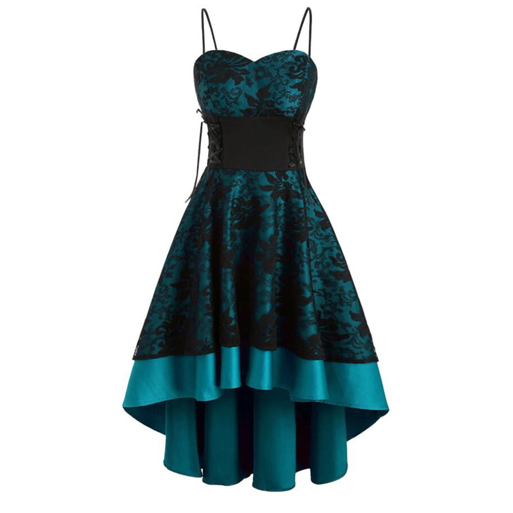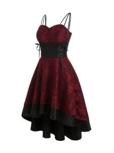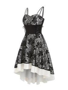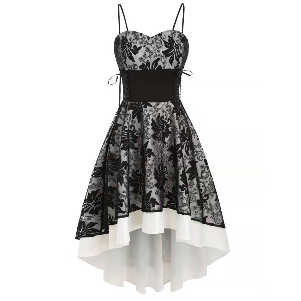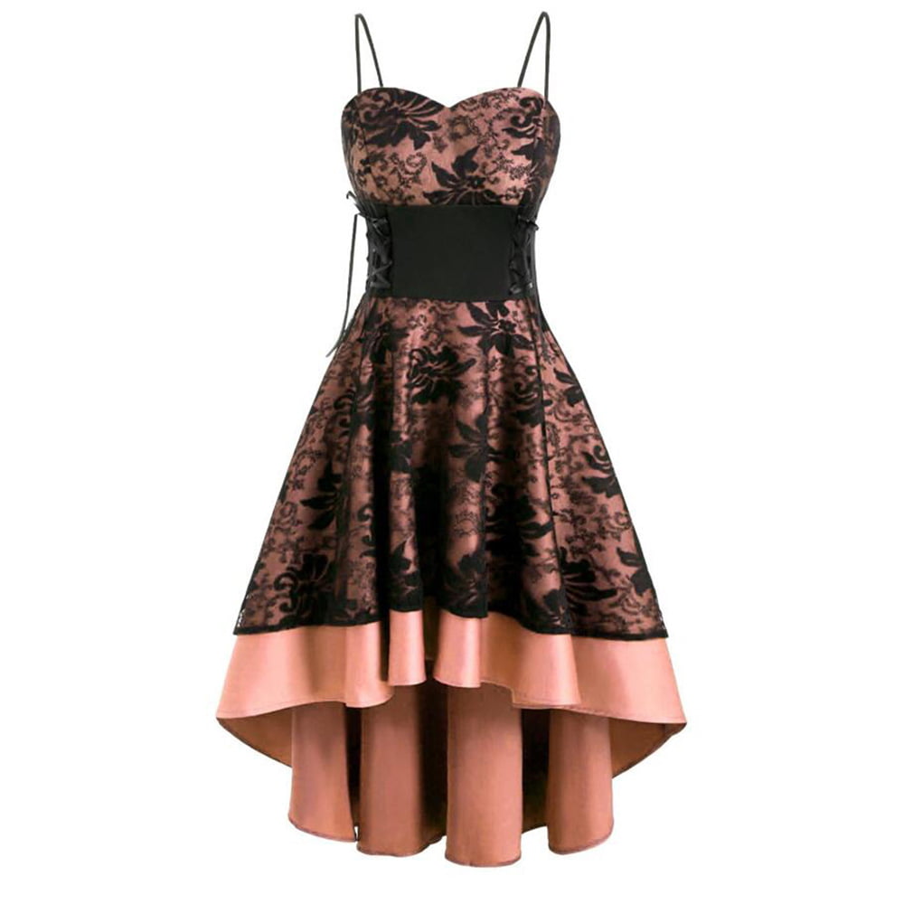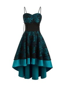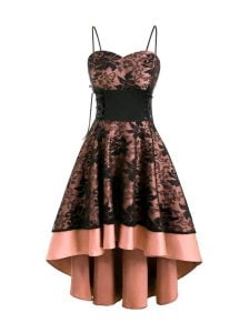 Spaghetti Strap Dresses Lace High Low Hem Vintage Dresses