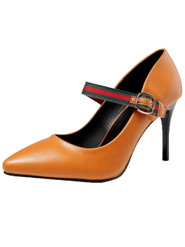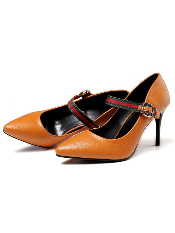 Stiletto Heels Pointed with Buckle Strap Elegant Vintage Shoes