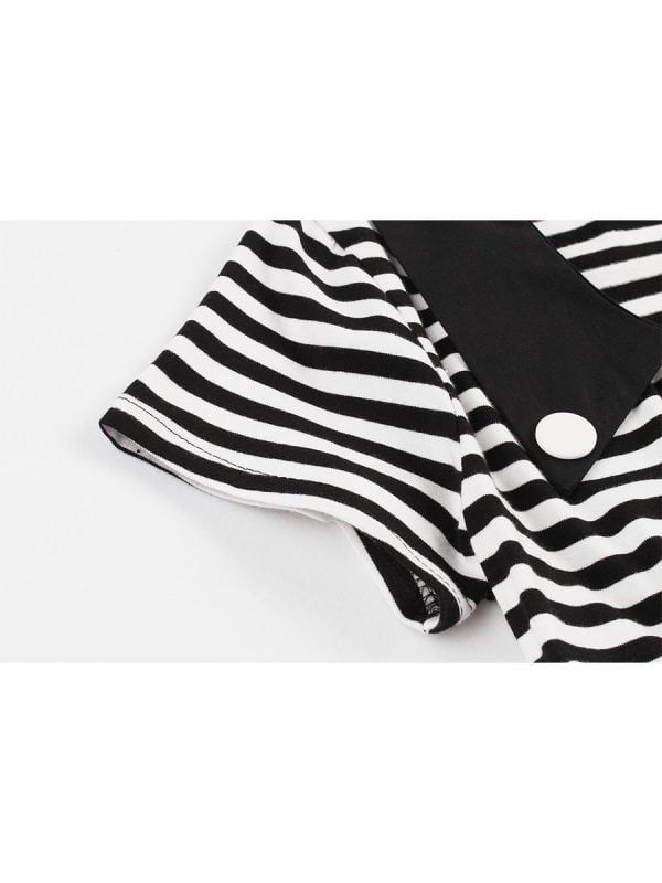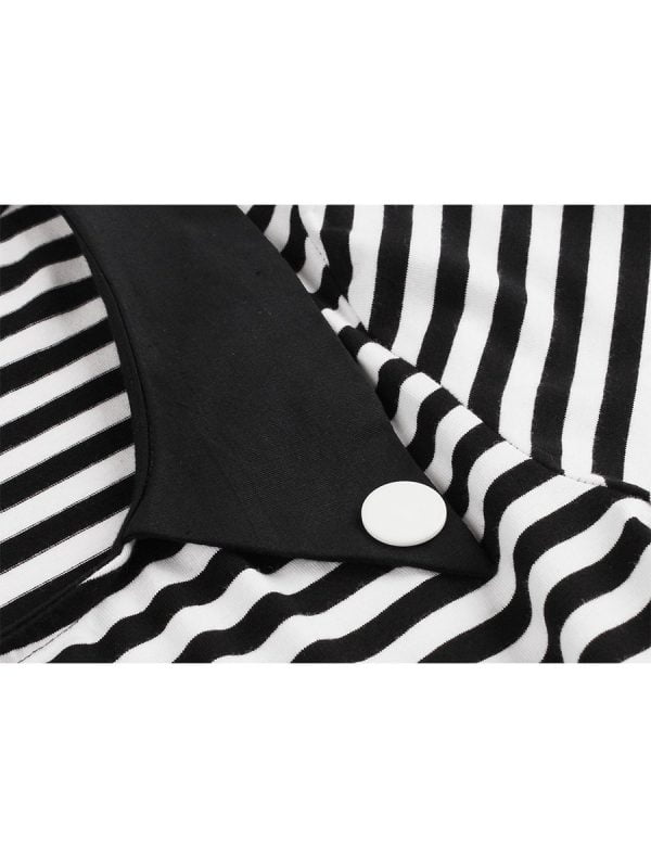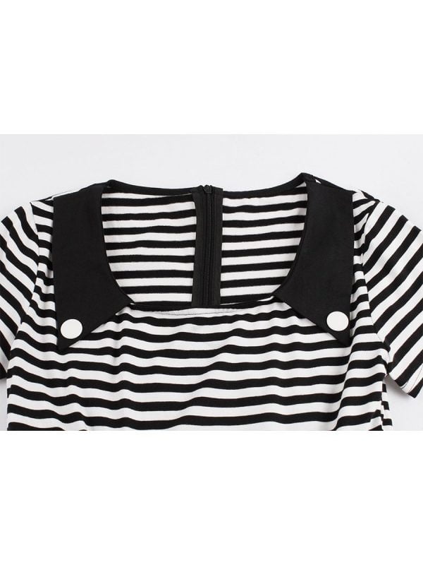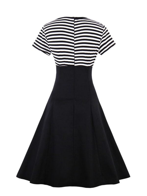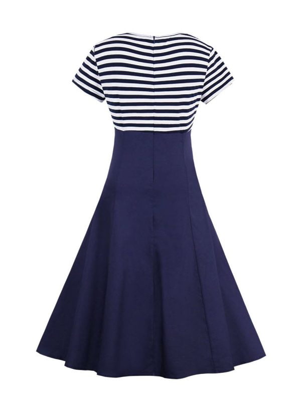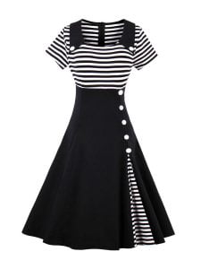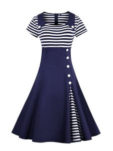 3. Striped patchwork with buttons embellished looks vintage style makes this dress eye-catching. you will be stylish charming elegant in the crowd.