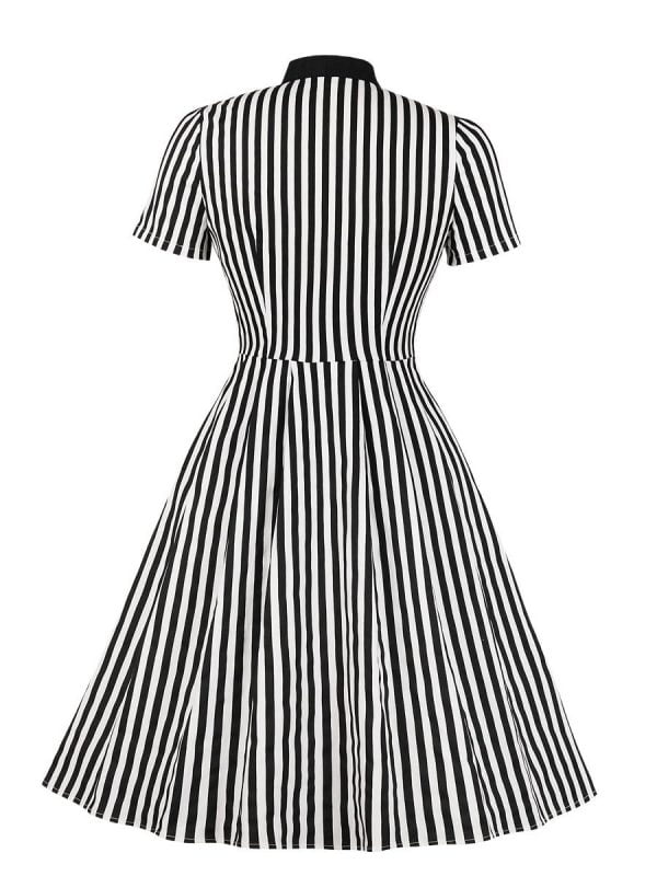 1950s Dress Audrey Hepburn Single Breasted Solid Color Swing Dress