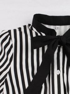 Swing Dress Deep V Neck Buttons Design Lantern Sleeve Aline Dress