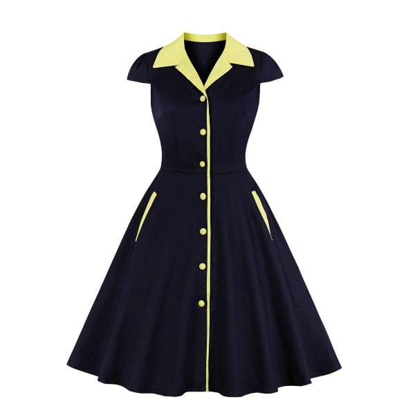 1950s Dress Audrey Hepburn Single Breasted Solid Color Swing Dress