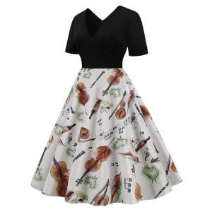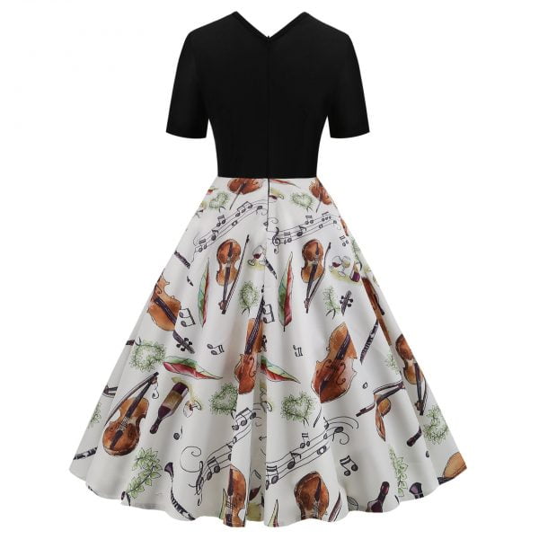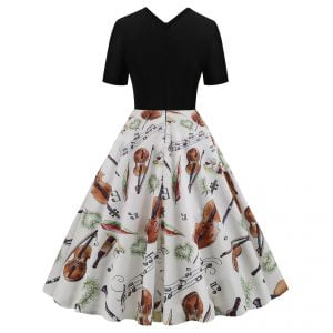 Women Dress One-shoulder Lace Retro Note Printing Swing Dress