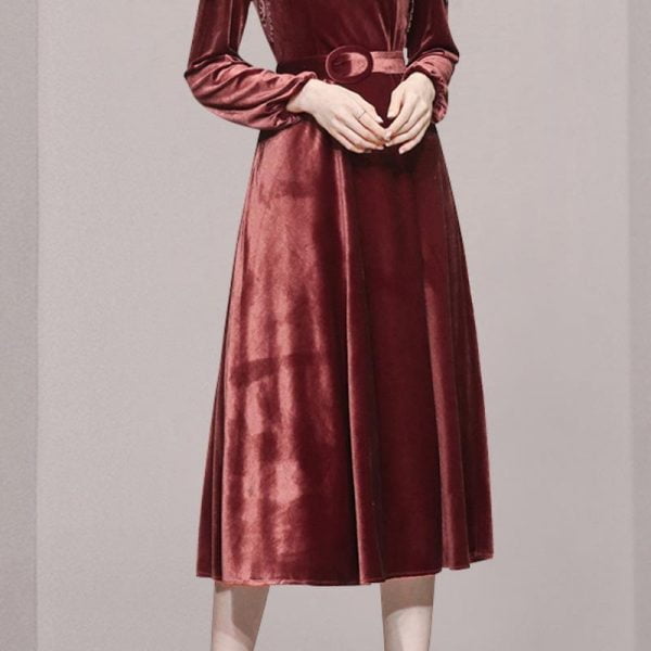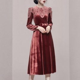 The unique lace stitching neckline makes this dress more retro; The high-quality velvet material is not only warm and comfortable. but also makes this dress more luxurious;