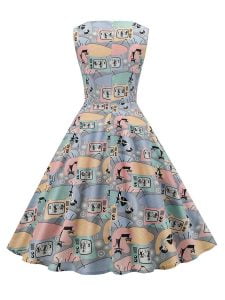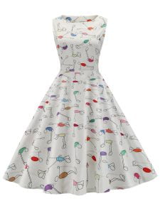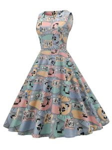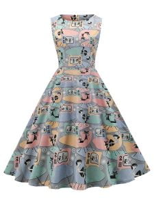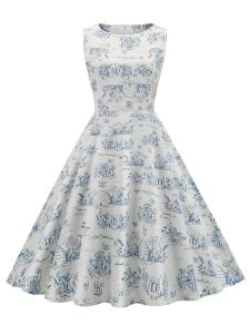 Swing Dresses Retro-Style Sleeveless Floral Party Dress for Women
