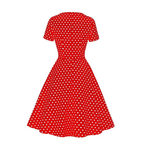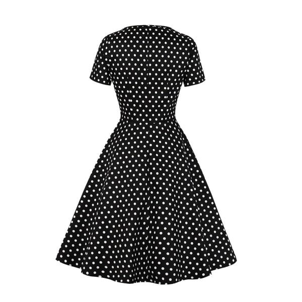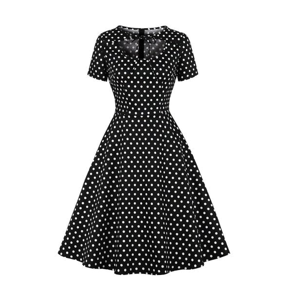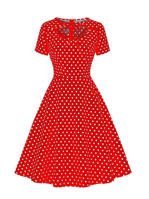 - Stylish Design: 1950s Dress. short sleeve. hollow out design in the front. with bowknot tie. polka dot pattern. all of which make this dress more you more exquisite;