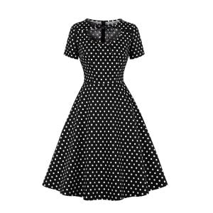 Swing Dresses Short Sleeve Hollow Out 1950s Polka Dot Dresses
