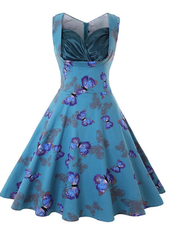 Swing Dresses Sleeveless Slim Retro Midi Dress