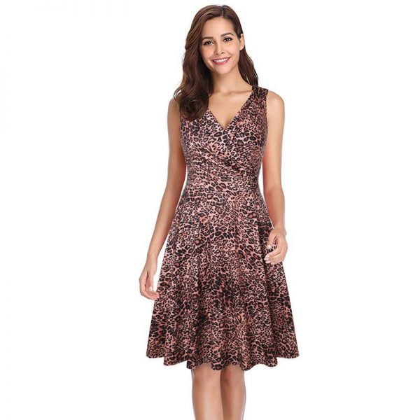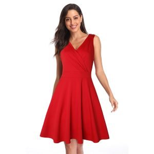 Swing Dresses Sleeveless V-neck A-line Midi Dress