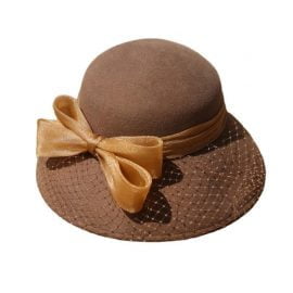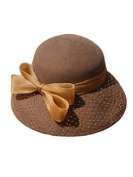 The elegant vintage hat. with Audrey Hepburn Style. a bowknot tie ribbon. mesh surface. a big brim;