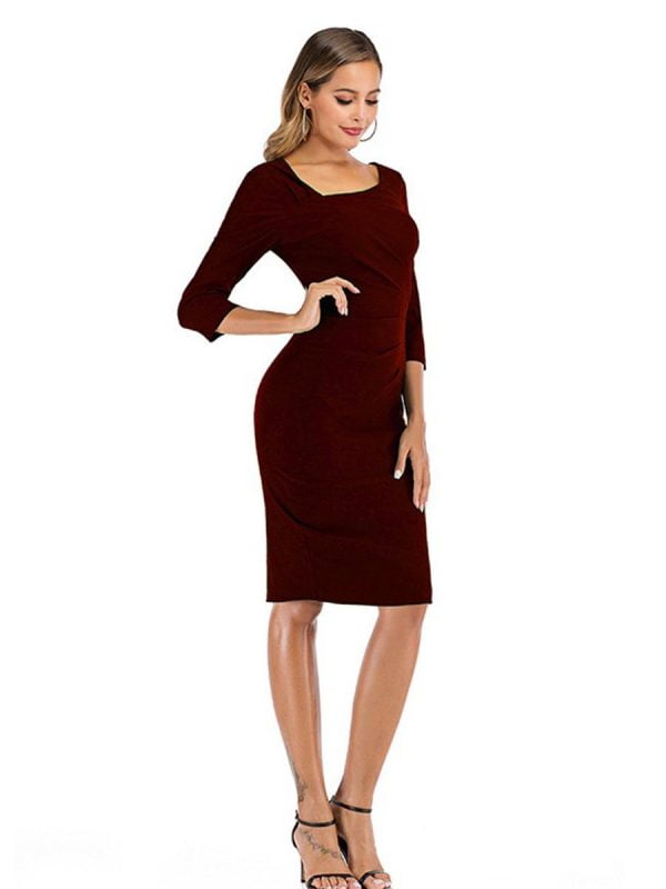 - Classic Vintage 1950 Style. Wrap Ruched Waist Below the Knee Dress