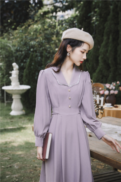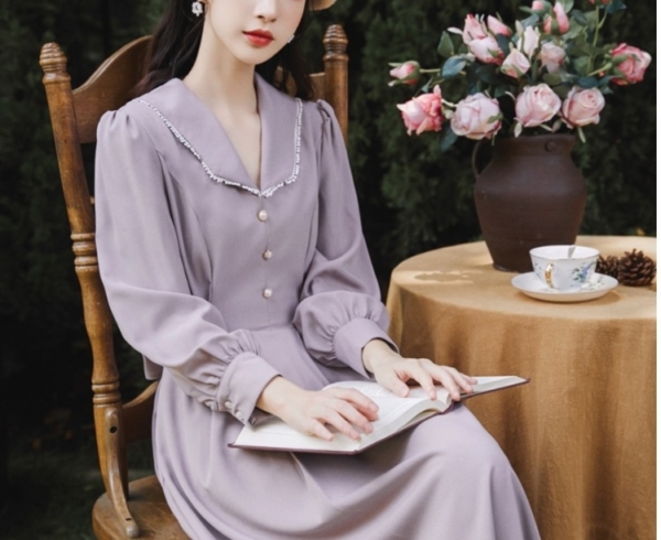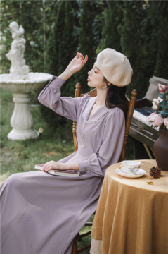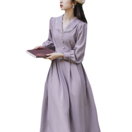 Vintage Dress Puff Long Sleeve Half-neck Ruffle Maxi Swing Dresses