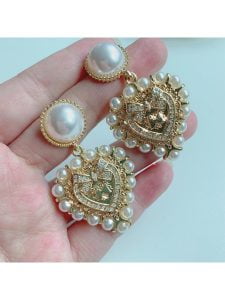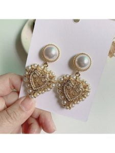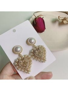Vintage Accessories Pearl Rhinestones Heart Shape Vintage Earring for Women