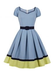 Square-neck and short sleeves are comfortable; The belt design makes it easy to fit busty women. Conceal zipper at the side to fully make the perfect dress look;