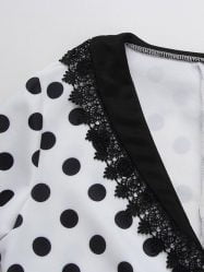 Style Feature?a?aThree-Quarter Sleeve. ?V-neck. Dot Print. Sashes. Casual Vintage Style.