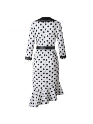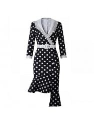 Vintage Dress Lapel Long Sleeve Polka Dot Midi Bodycon Dress