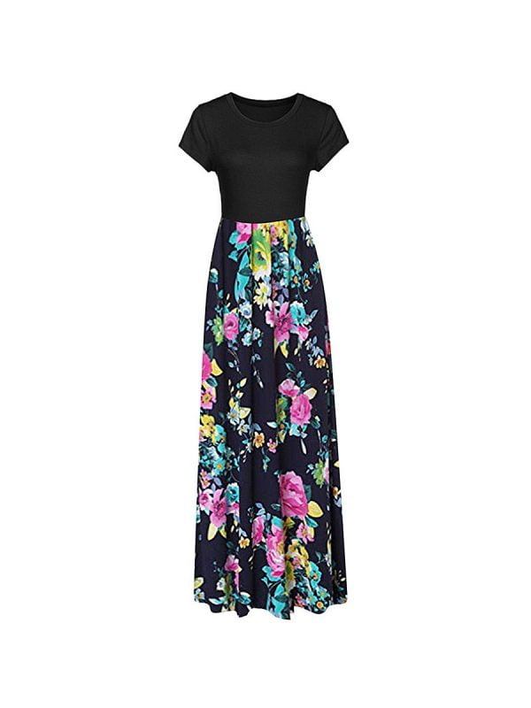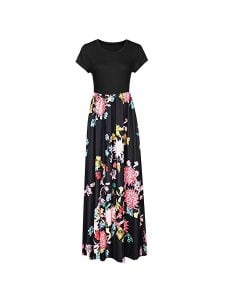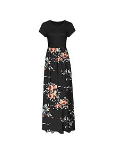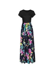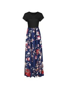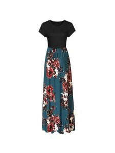 Vintage Prom Dress Short Sleeve Patchwork Maxi Long Dress