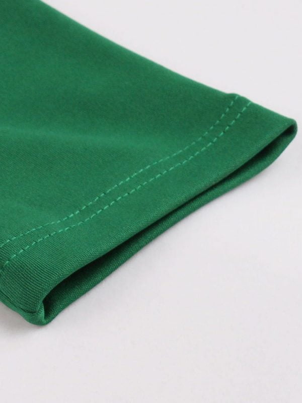 Swing Dress Deep V Neck Buttons Design Lantern Sleeve Aline Dress