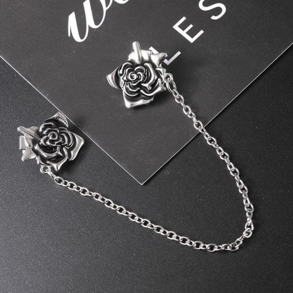 Vintage Jewelry Rose Flower Shirt Chain Collar Clip Pin Brooches
