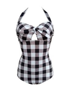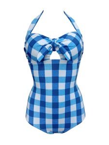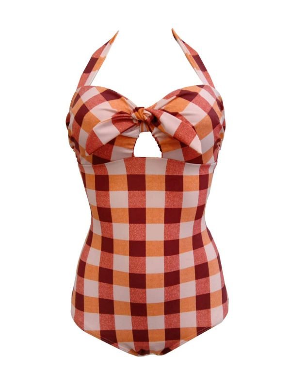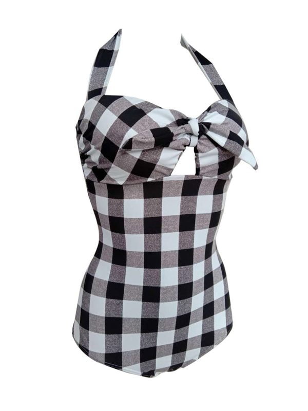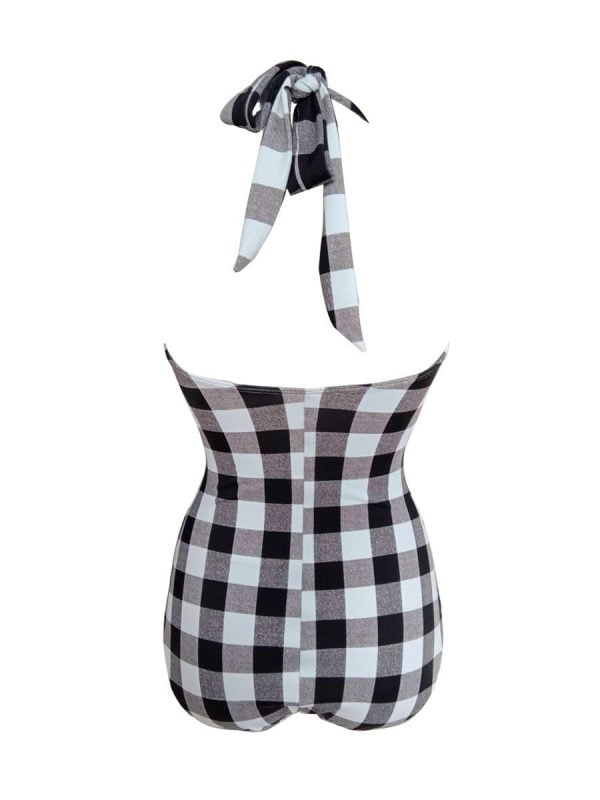 Vintage One Piece Swimsuit Plus Size Halter Plaid Bathing Suit
