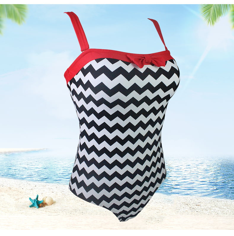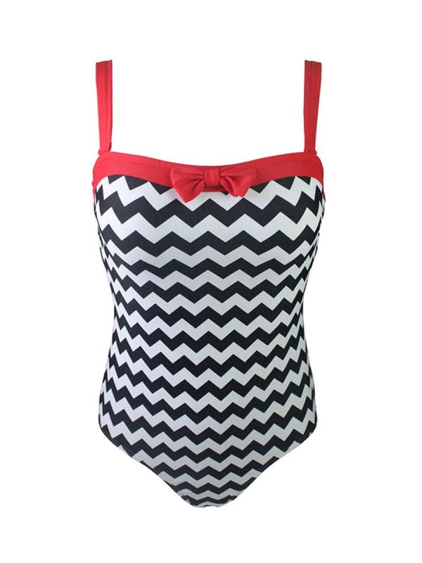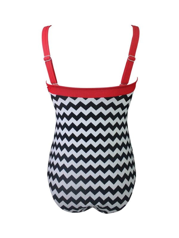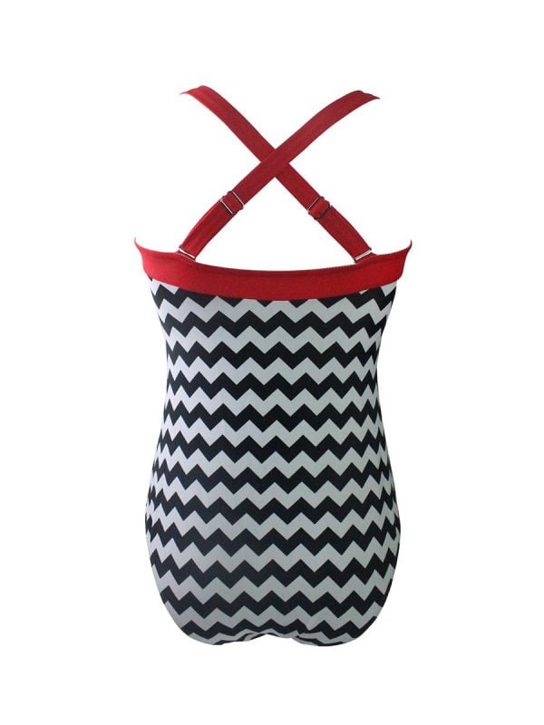 Vintage One Piece Swimsuits Striped Backless Swimwear