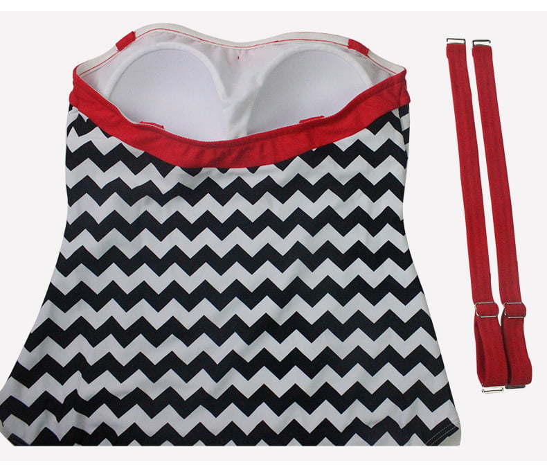 Striped printed tankini top with double straps is attractive and stylish. making this modest bathing suit more charming. flirty. and chic. a padded bra without underwire. sporty style. very chic and flattering.