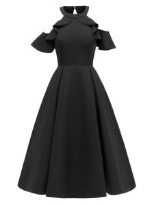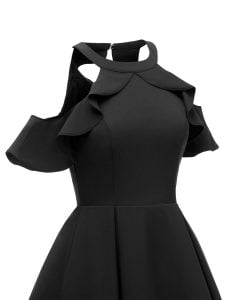 1950s Swing Dress Solid Color Ruffled Dress