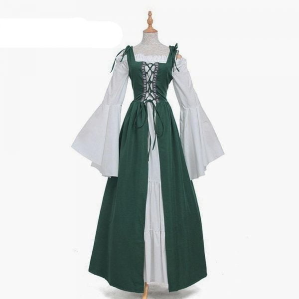 Vintage Renaissance Dress Medieval Lace Up Halloween Over Maxi Dresses
