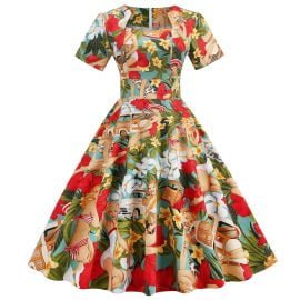 These 1950s vintage cocktail dresses will never be out of fashion; The classic swing dress is matched with exquisite printing. making you the focus of the crowd;