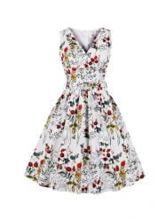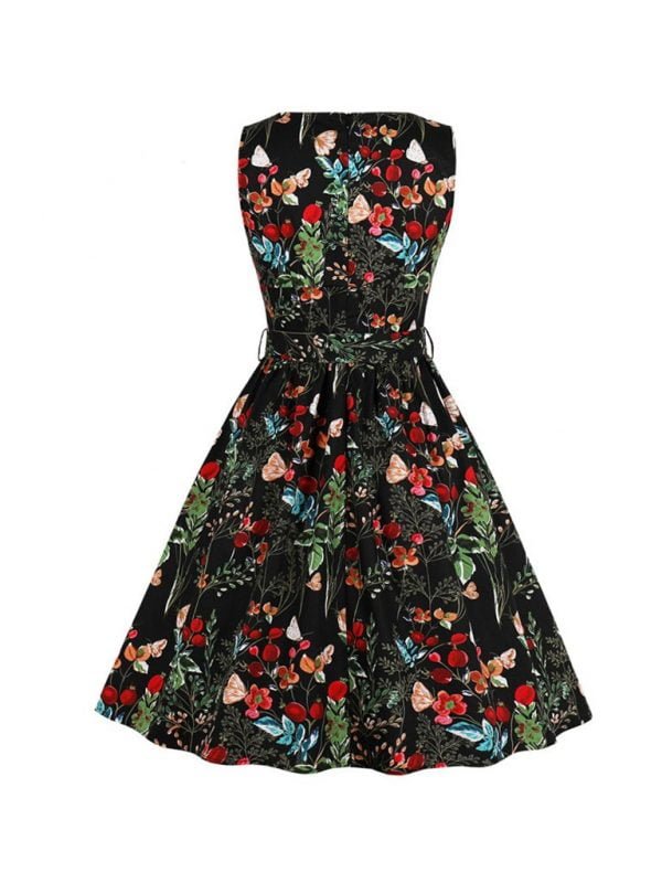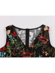 Wedding Guest Dress Multicolor Floral Retro Sleeveless Swing Party Dress