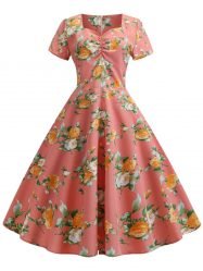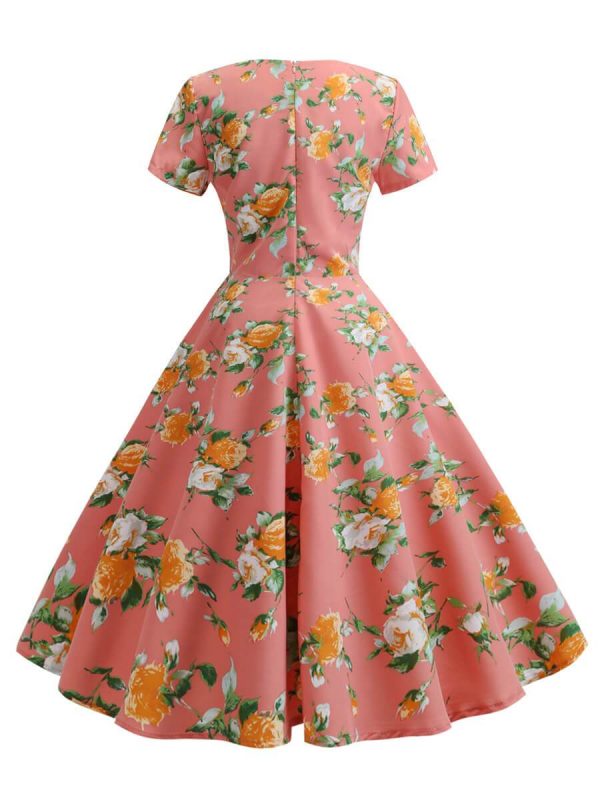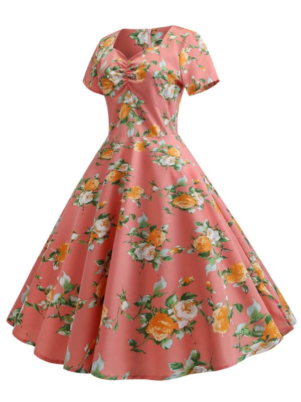 Wedding Guest Dresses Floral Print Short Sleeve Vintage Swing Dress