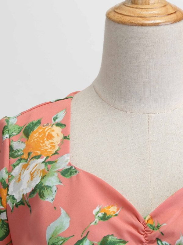 Tags: 2XL, cotton, Floral, Knee-Length, L, Less than $30, M, Orange, Party, S, Short Sleeves, XL