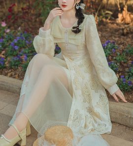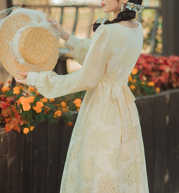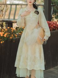 This dress adopts a double-layer design. the outer layer is made of hollow lace. and the inner layer is made of light mesh. which makes you look more noble and elegant; The design of the lantern sleeves modifies the arm line and is more retro;