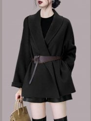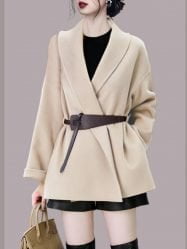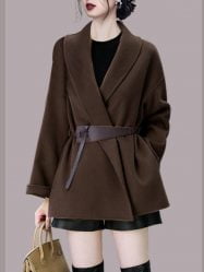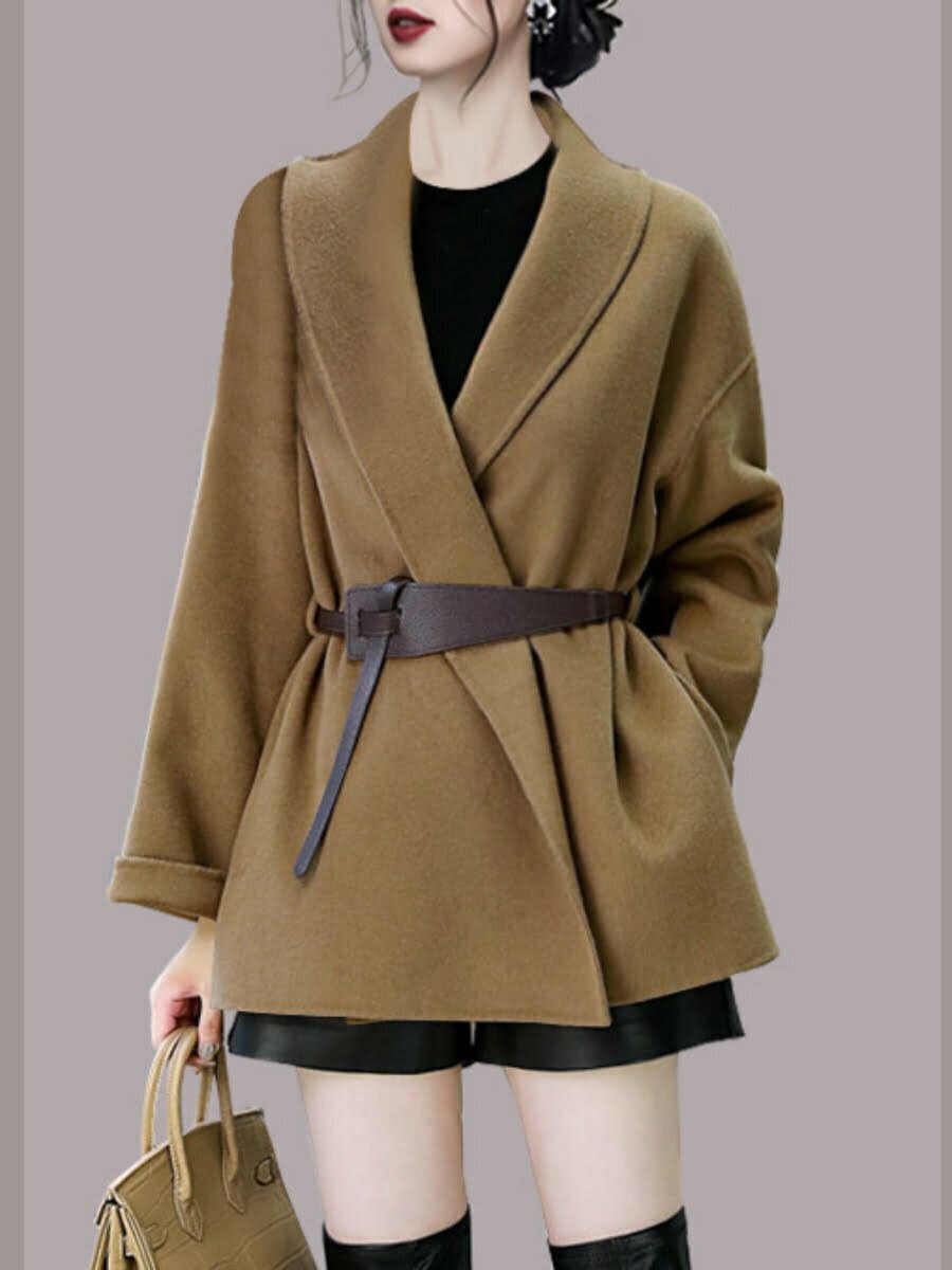 The classic cross-V-neck wool coat is matched with a leather belt; While fixing the clothes. the contrasting color design makes it unique and fashionable; Loose version and high-quality fabrics make you soft and comfortable to wear;