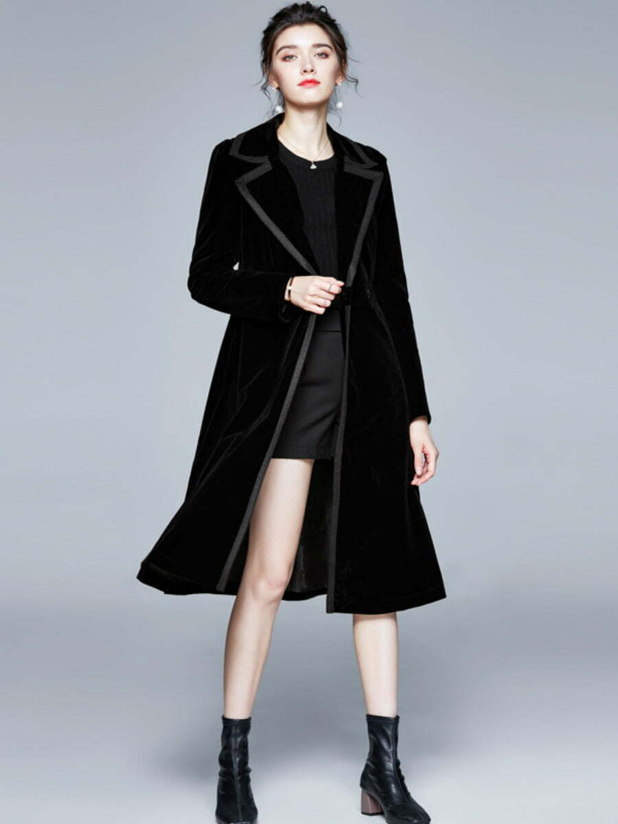 Winter Coats Lapel Long Sleeve Aline Velvet Casual Long Jackets