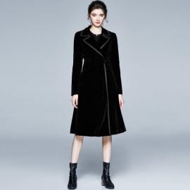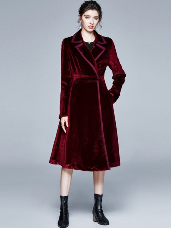 Winter Coats Lapel Long Sleeve Aline Velvet Casual Long Jackets