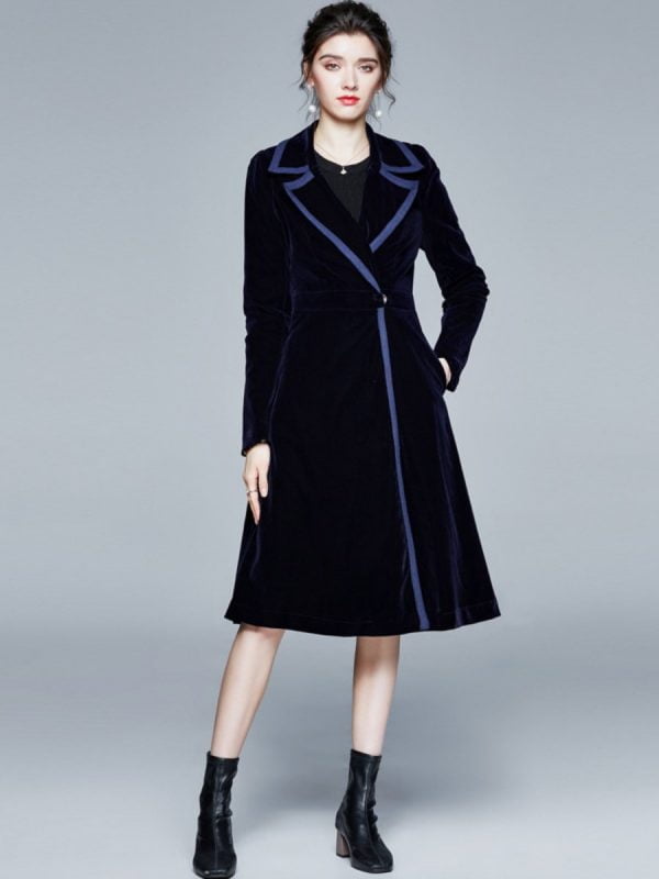 The contrast color edging is unique and fashionable; The classic A-line version highlights the slender waist. modifies the proportions of the body. and creates a charming body curve;