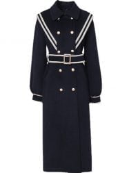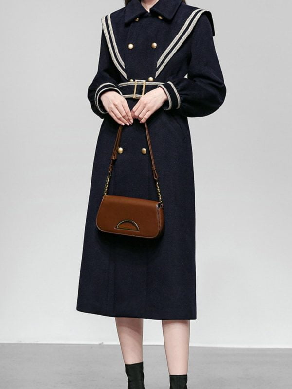 The contrast color edging design makes this solid color coat more fashionable; The navy style design with the lapel and waist is retro and classic; The high-quality fabric is soft and comfortable. can resist the cold wind and keep warm;