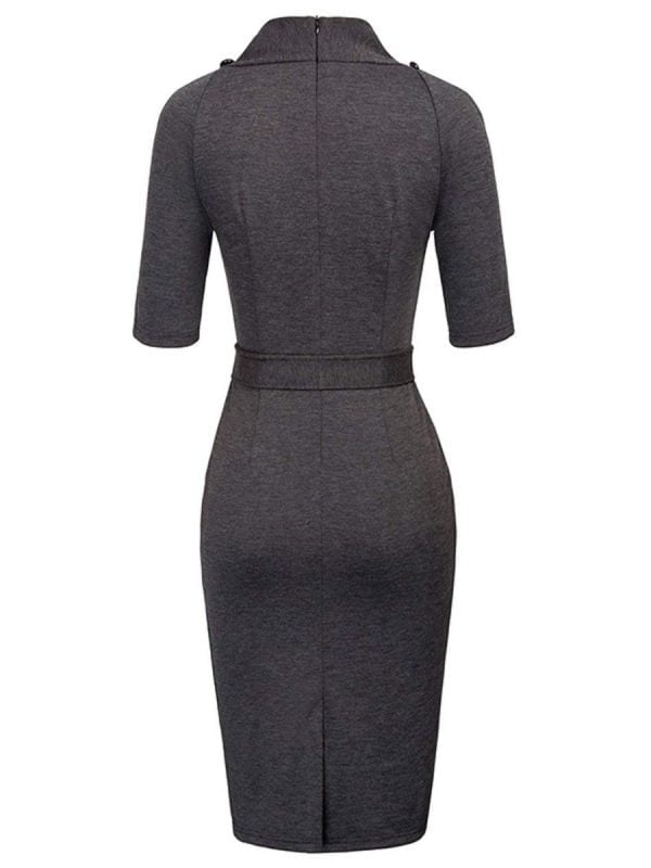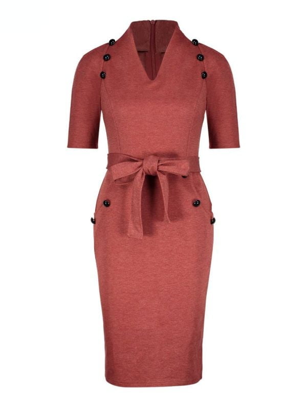 Pencil Dress Vintage Solid Color Double Breasted Wiggle Dress