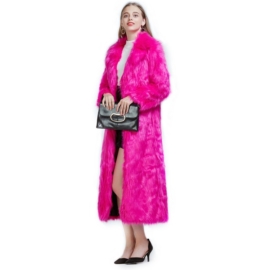 Women Winter Coat Faux Fox Fur Extra Long Suit Collar Fur Jacket