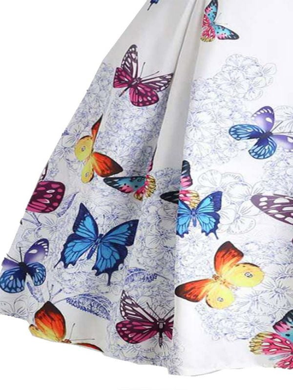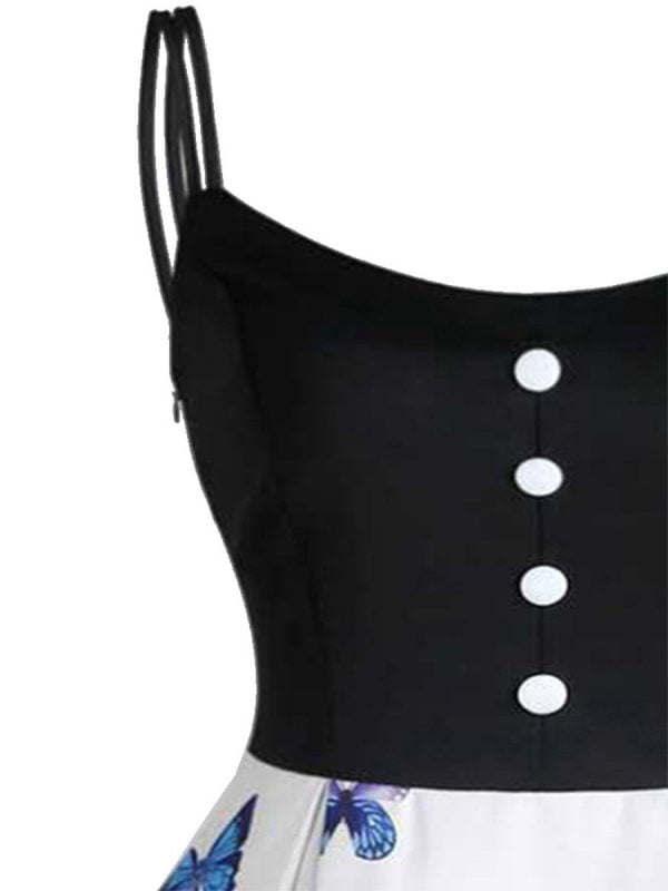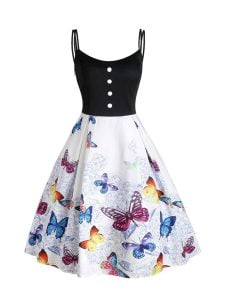 Women’s 1950s Dresses Butterfly Print Button Decor Spaghetti Strap Dresses