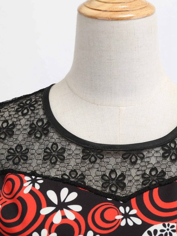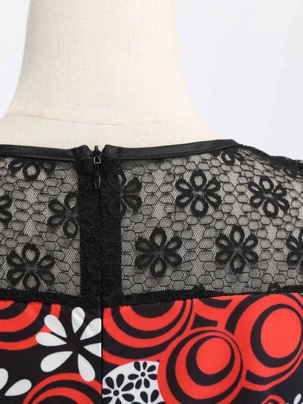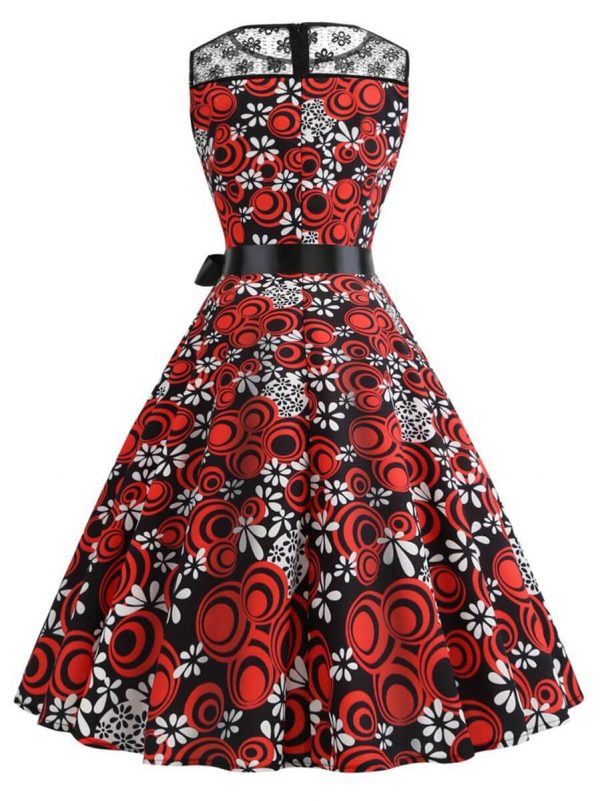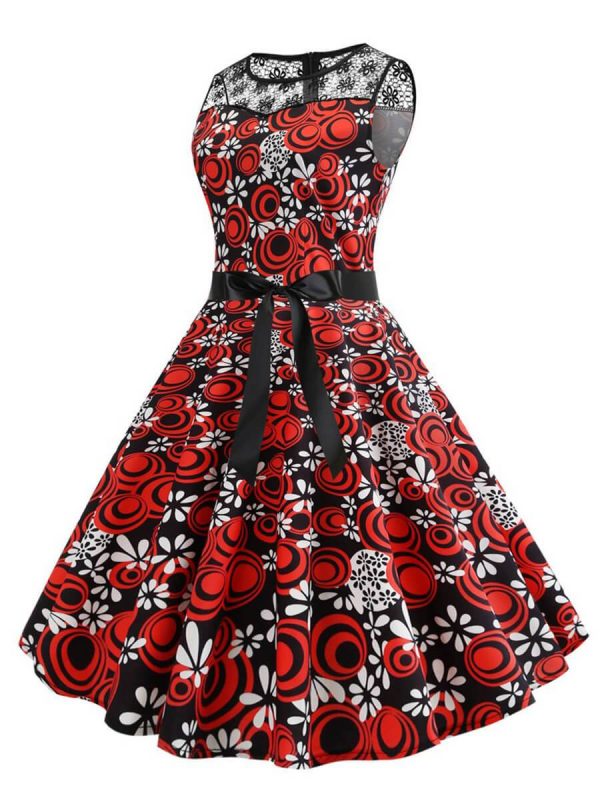 Womens 1950s Floral Dress Lace Patchwork Sash Design Midi Dress