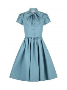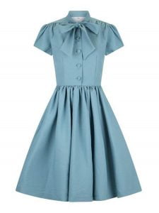 Women’s 1950s Light Blue Dress Bow Decor Short Sleeve Sweet Midi Dress