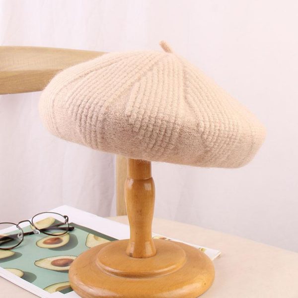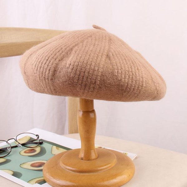 Women’s Beret Hats Wool Solid Color Vintage Painter Knitted Hat