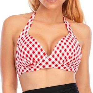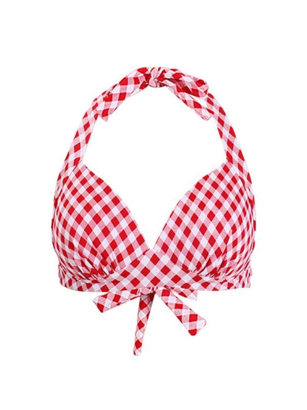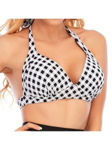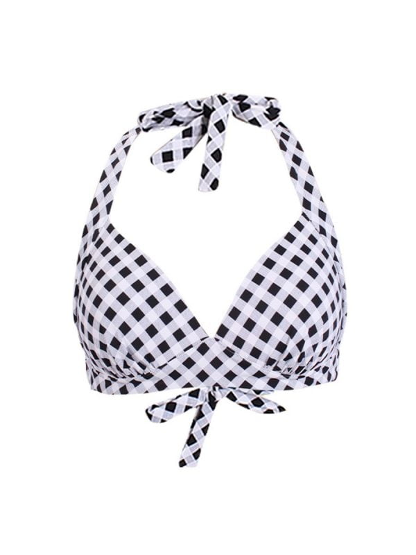 Women’s Bikinis Tops V-Neck Plaid Soft Swimwear