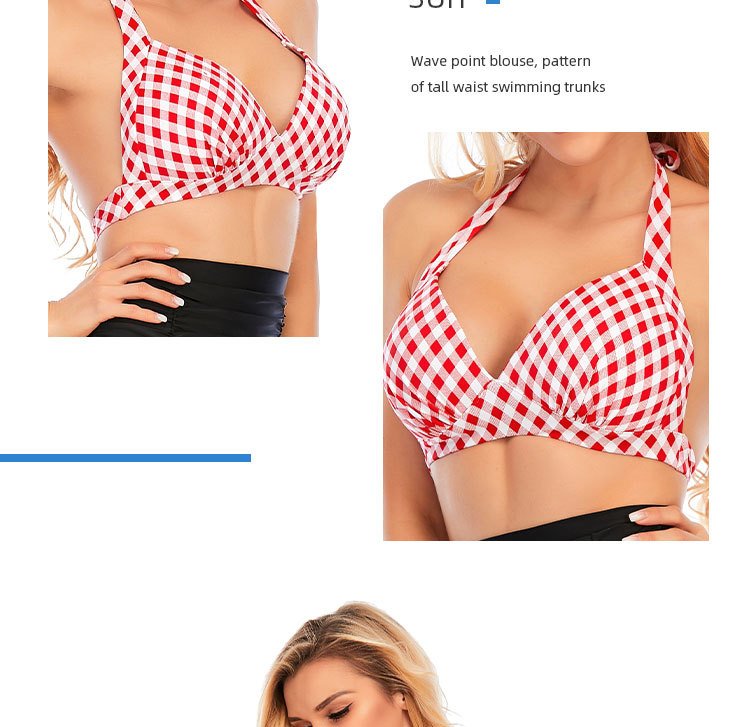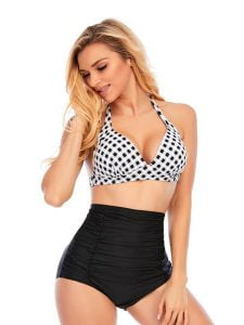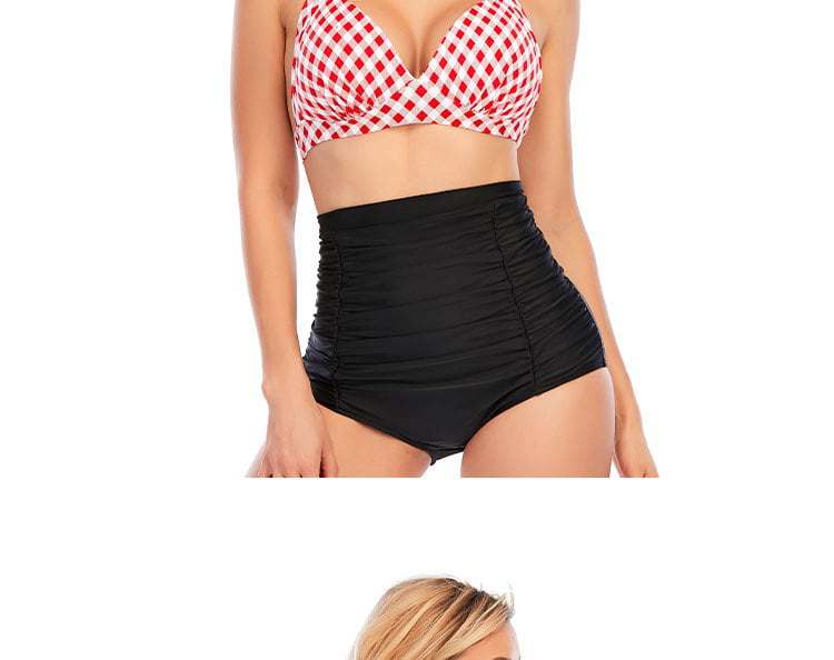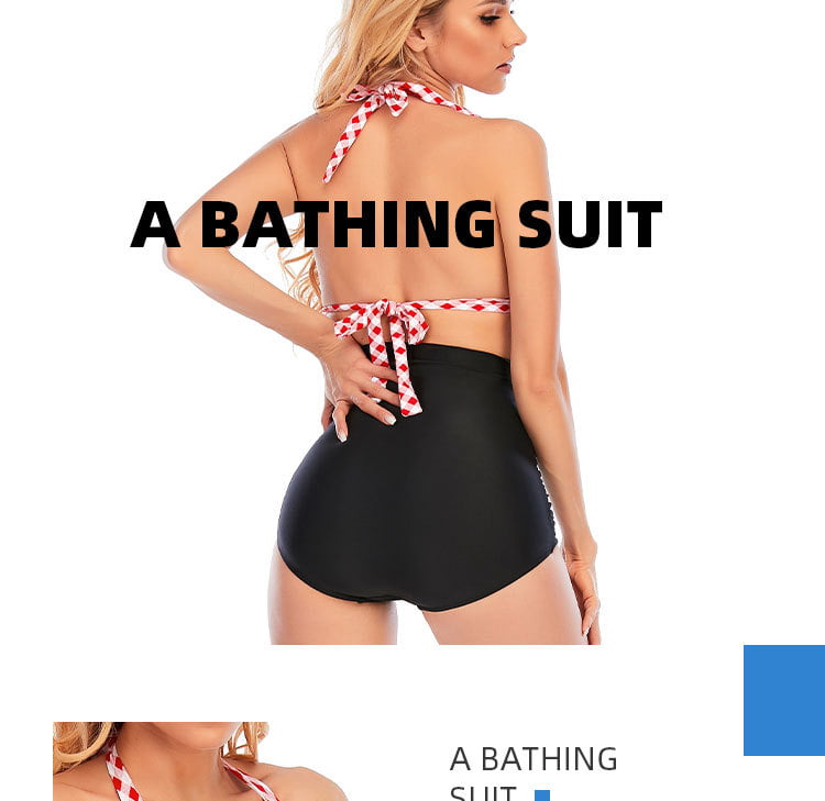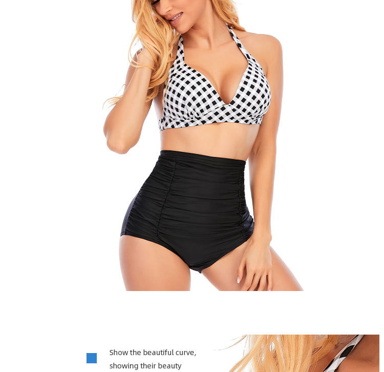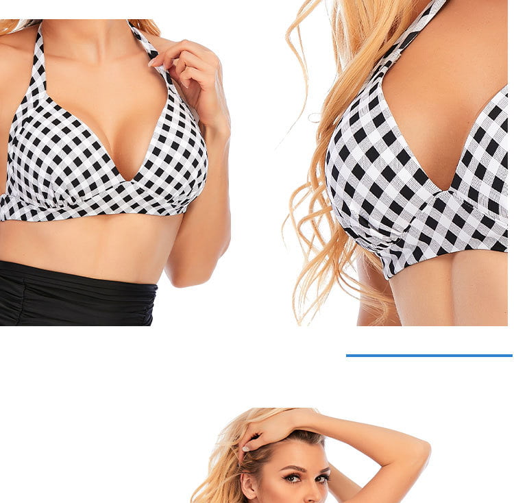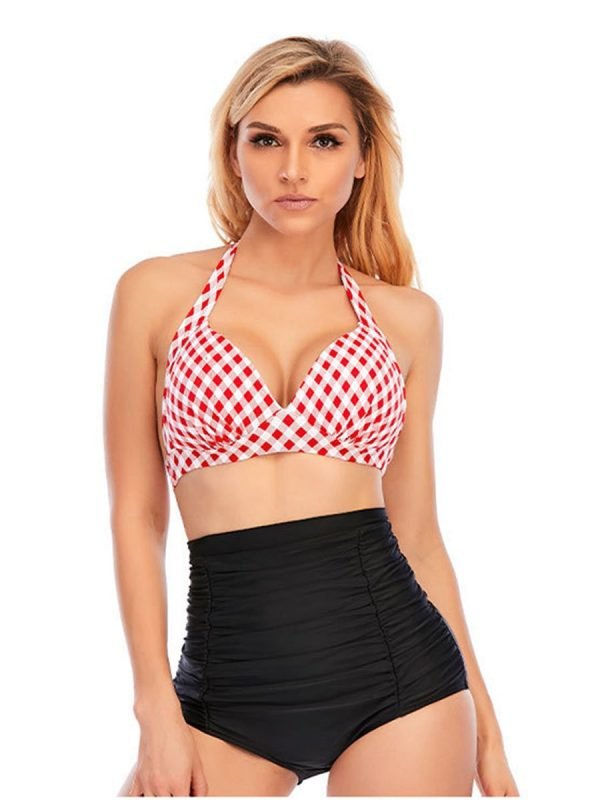 Sexy Halter Bikini Classic Plaid Pattern Plus Size High Waist Swimsuit For Women