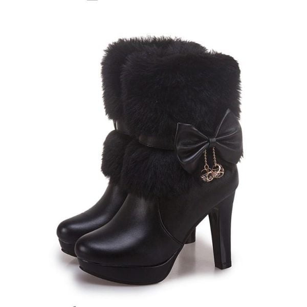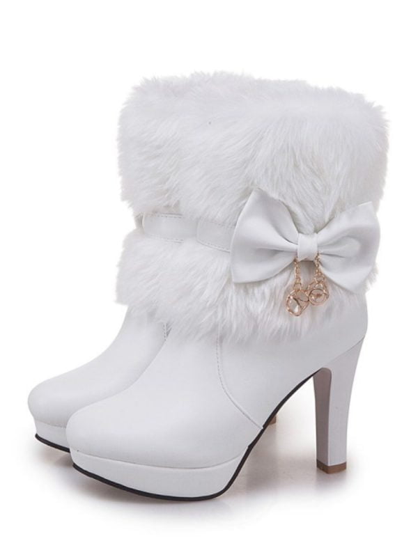 Women’s Boots Bowknot Fur Platform Zipper High Heel Ankle Boots