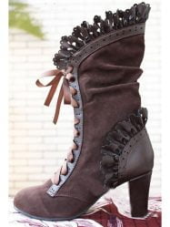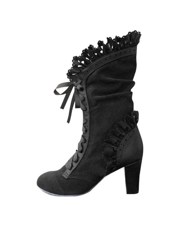 Boots For Women Lace Patchwork Pointed Toe Lace-up Block Heel Boots