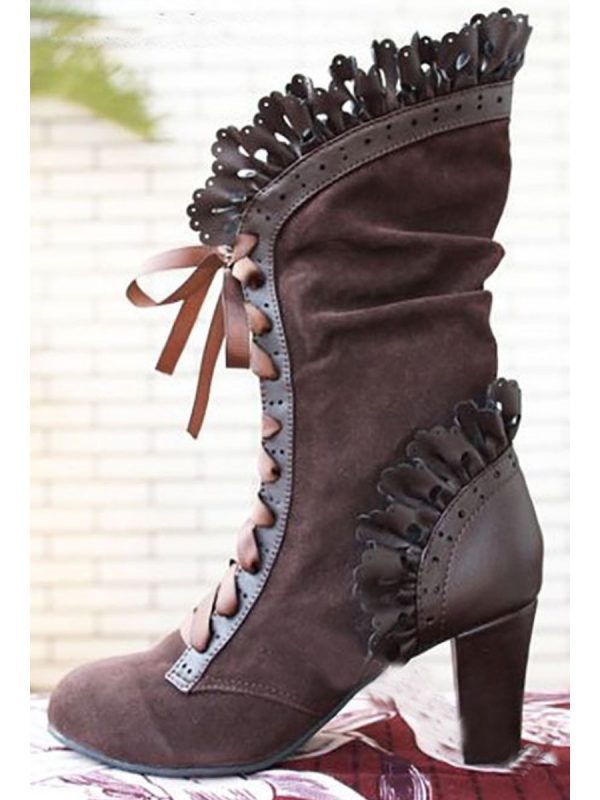 Women’s Boots Round Toe Lace Patchwork Lace-up Block Heel Ankle Boots
